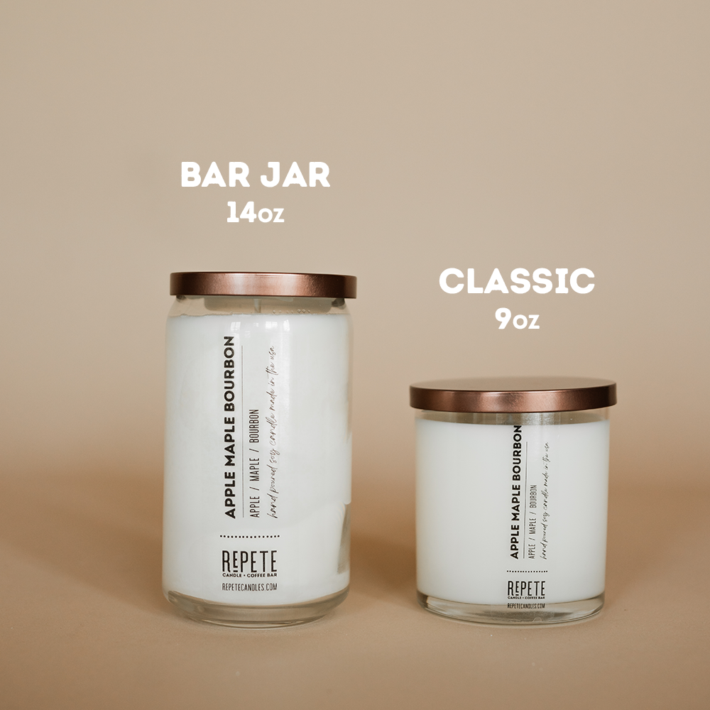 Available in: classic (9oz candle), bar jar (13oz candle), 4ozroom spray, 4oz reed diffuser, wax melts, and car diffusers